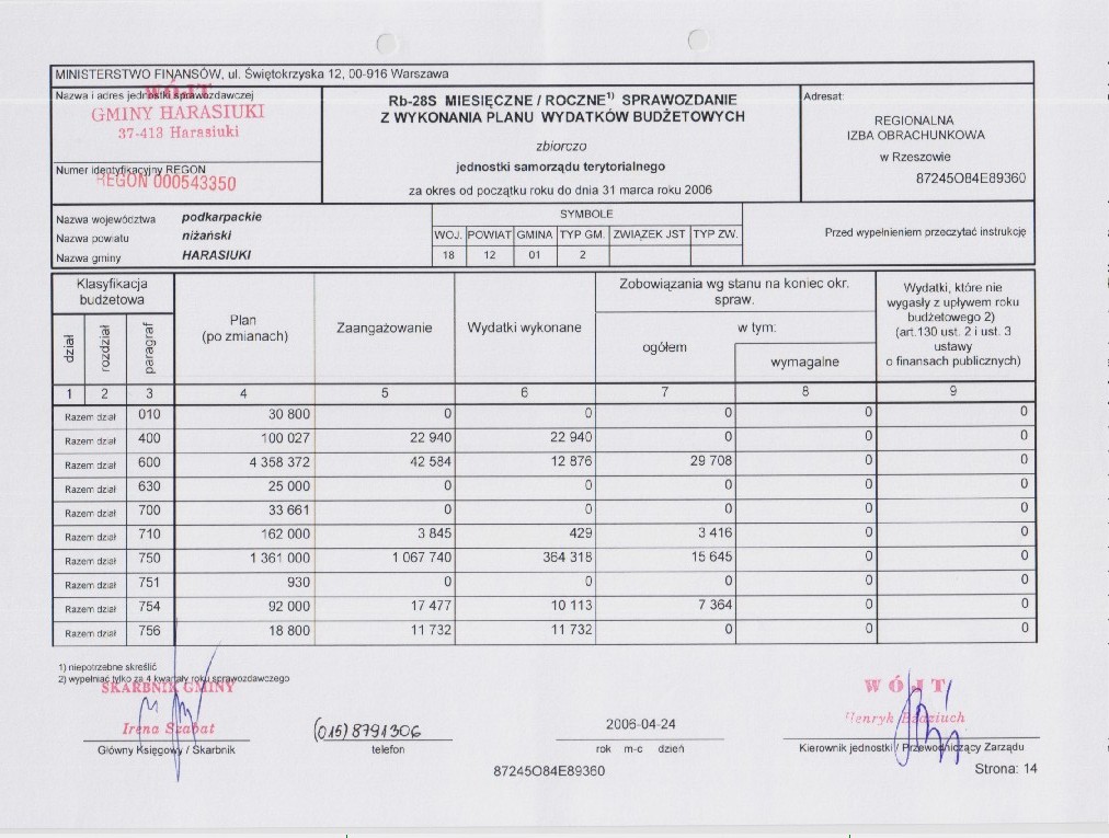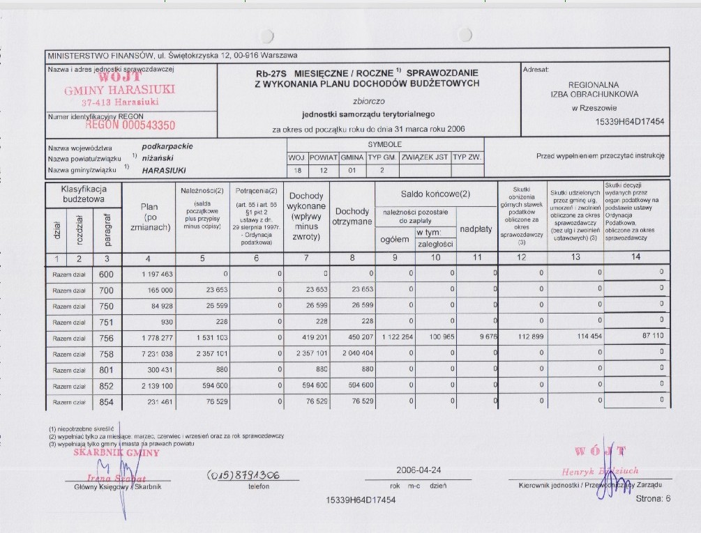 • UCHWAŁA Nr XXXIII/197/06 RADY GMINY W HARASIUKACH z dnia 3 marca 2006 r. w sprawie uchwalenia budżetu gminy na 2006 rok.