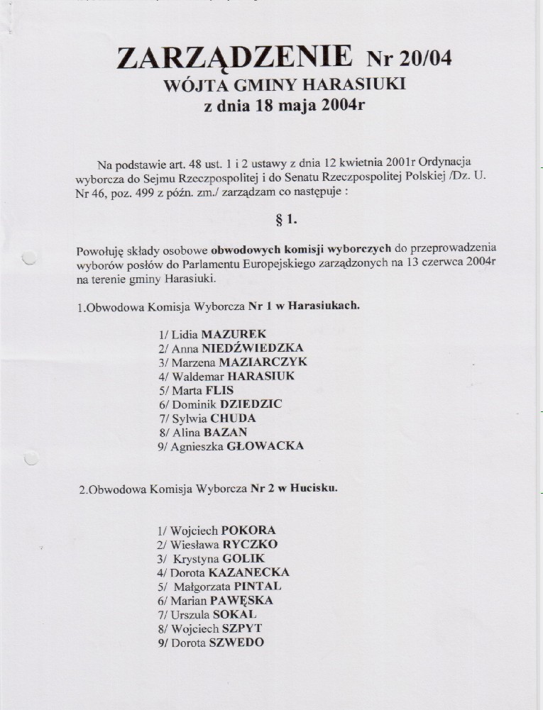 Zarządzenie Nr 20/2004 z dnia 18 maja 2004r.